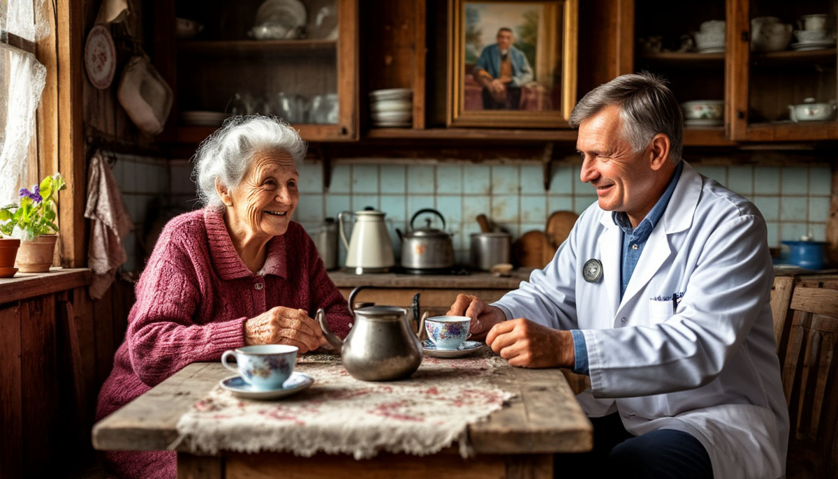 Доктор Илья Сергеевич Морозов въехал в деревню Подгорное на старой «Волге». Машина скрипела на каждом ухабе. Он уже тридцать лет работал участковым терапевтом в этой глуши, объезжая десяток окрестных сел. Сегодня в его списке значилась новая пациентка — Анна Федосеевна Белова, 82 года, жалобы на боли в сердце, головокружение, отеки ног.