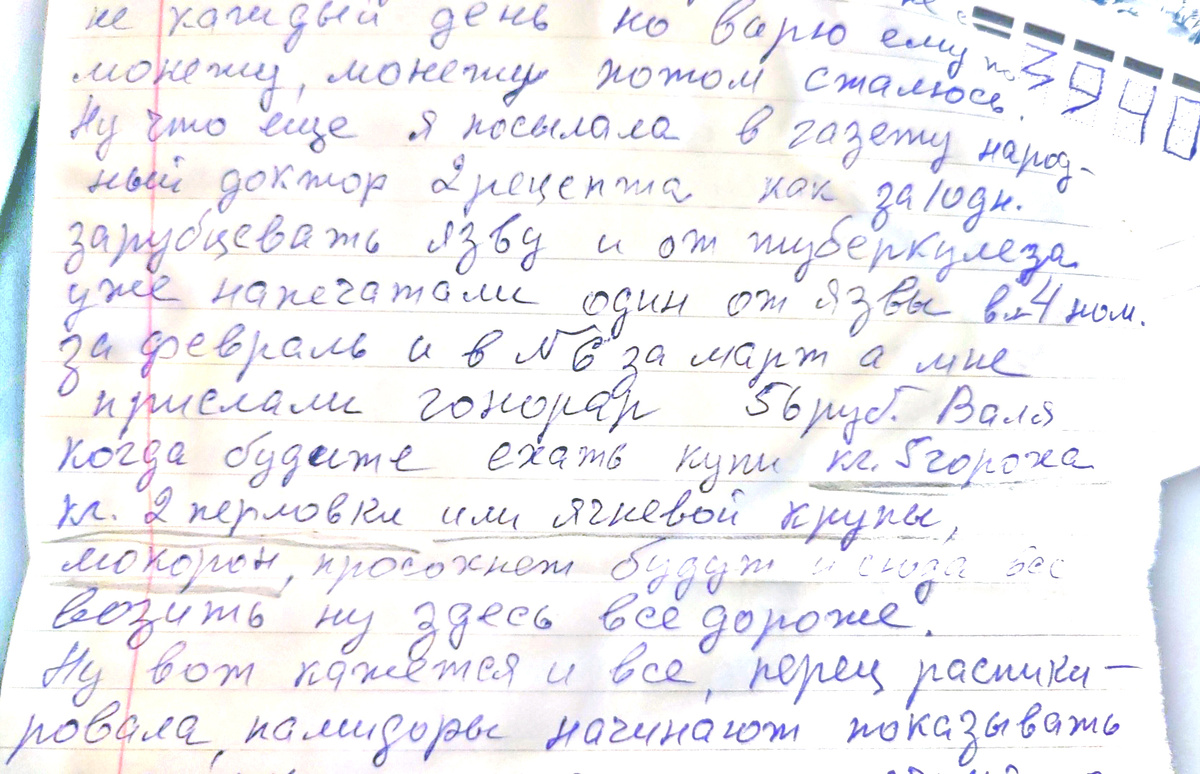 Я уже рассказывала о своем небольшом опыте в поиске статей. Тогда поводом "найти оригинальную статью" послужила газетная выписка в старом фото-альбоме. В этот раз поводом послужила сортировка старых бумаг, которые я как истинный Плюшкин, собираю. Я храню все свои письма. Среди них было письмо от бабушки. Старые письма - это как память, как образец почерка, как возможность почувствовать что-то, что давно зарыто в памяти. Письма от бабушки простые. Вот она ругает, что дочь мало рассказала про внука. Вот сетует о каких-то бытовых горестях. Вот ворчит на кота, которому нужна "особая" диета, так как остальное не ест. Вот пишет список того, какие лекарства или продукты ей привезти в следующий раз. Сотовых телефонов еще нет, а из стационарных - телефон в другом селе для крайних случаев. И вот среди прочего я натыкаюсь в письме на информацию о том, что бабушка посылала какие-то рецепты здоровья в газету "Народный доктор". "Ну что еще, я посылала в газету "Народный доктор" 2 рецепта: как за 10