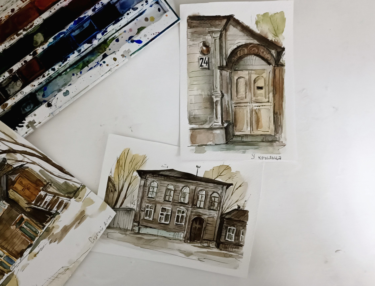 В одну из суббот июня 2025 года в Туле в ремесленном дворе "Добродея" проходило танцевальное мероприятие, а заодно и выставка-продажа тульских мастеров. Там обратил внимание на небольшие акварели, размером с открытку, где были нарисованы тульские и самарские дворики. Автором данных работ была Дарья Щербакова, она, как и наш небольшой клуб "Пантографцев" любит старую Тулу и старые домики.