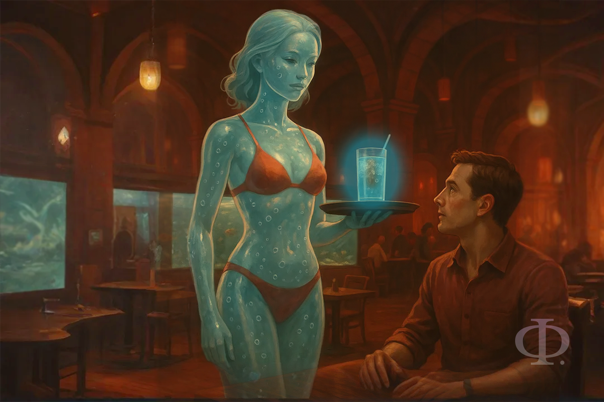 "Стихиальная" официантка приносит на подносе стакан с жидко-энергетической субстанцией внутри - у меня было ощущение, что я ни разу такого не пробовал, вкус ни на что не похож, он затрагивает все мои рецепторы и вызывает короткое приятное ощущение на всех моих энергетических центрах. Это субстанция не влияет на рассудок или сознание, как это делают земные алкогольные напитки. Я выпиваю этот напиток, ну и по традиции, на самом интересном месте, просыпаюсь 😅