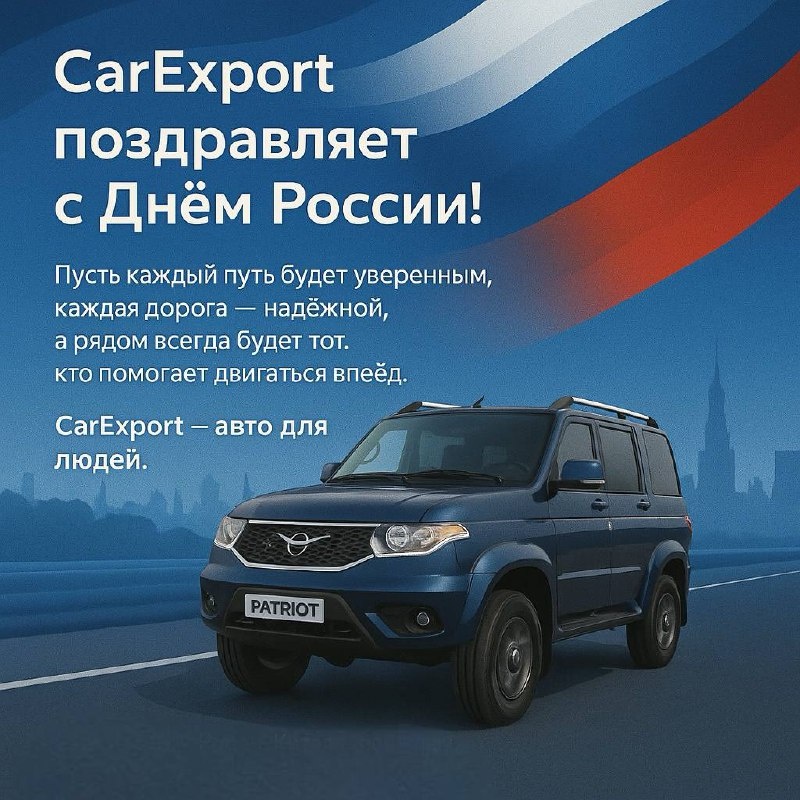 С Днём России, дорогие друзья! 🇷🇺 Команда CarExport от всей души поздравляет вас с этим важным государственным праздником! Желаем вам и вашим близким благополучия, крепкого здоровья, успехов во всех начинаниях и, конечно же, счастливых дорог! Пусть каждый день будет наполнен гордостью за нашу Родину и верой в её процветание. С праздником! С уважением, Команда CarExport.