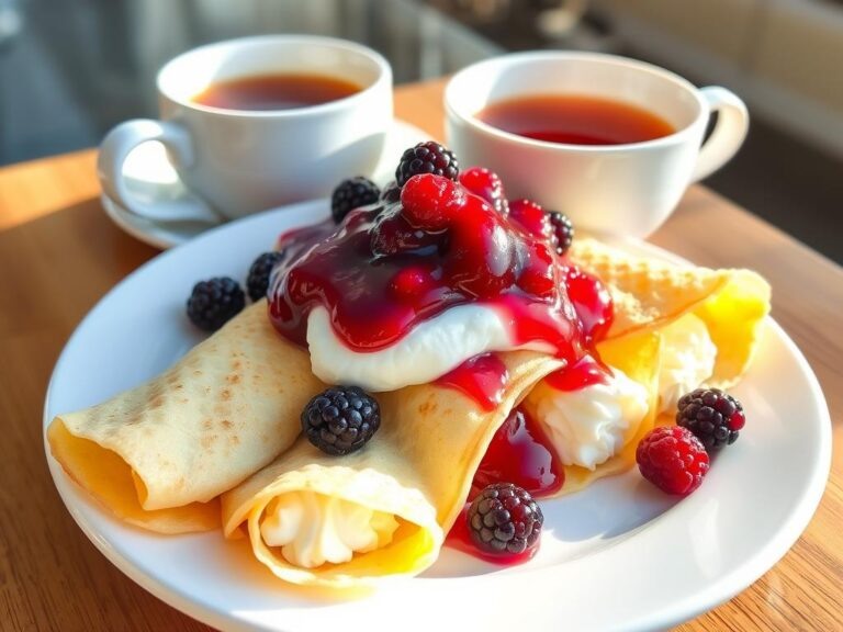 Нежные блинчики с творожной начинкой и ягодным соусом — идеальный завтрак для утреннего наслаждения