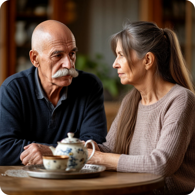 Галина Николаевна сидела рядом с мужем, скрестив руки на груди, ее лицо было напряженным, без тени улыбки.