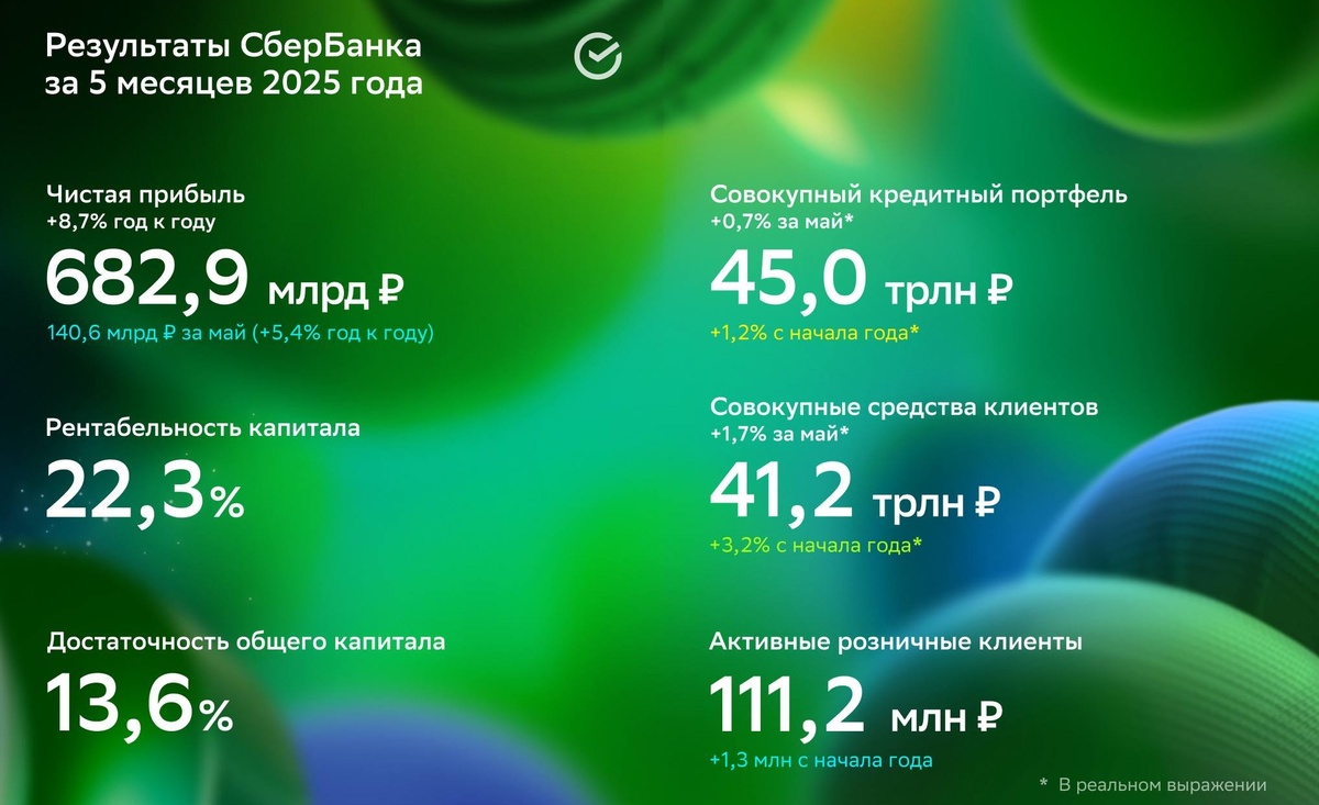 Сбербанк отчитался за май 2025 г. — прибыли продолжает помогать переоценка валютных кредитов и налоги. Корпоративное кредитование снизилось!