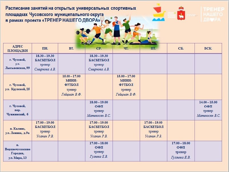 Приглашаем всех жителей Чусовского муниципального округа на занятия физической активностью! Не забудьте пригласить своих близких, друзей и знакомых — вместе заниматься спортом веселее и эффективнее! Занятия начнутся с 16 июня! Актуальное расписание на июнь. #спорт@glavachus