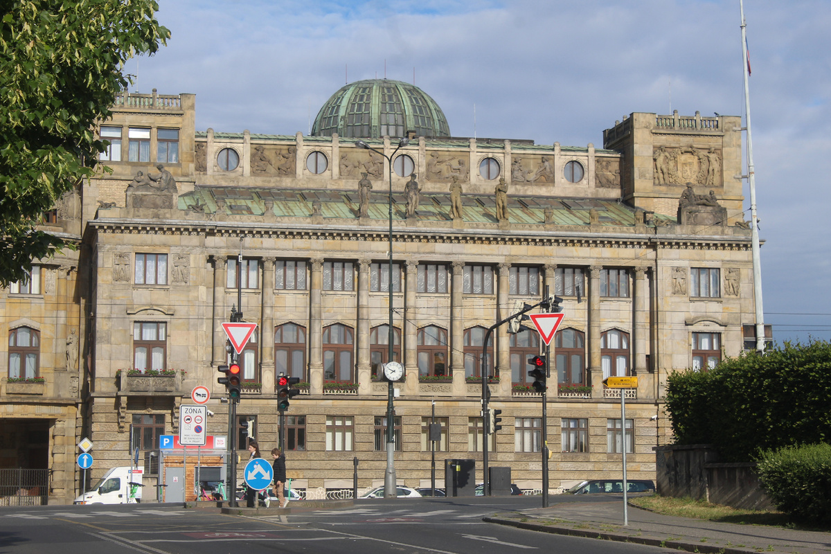 Старе Место, то есть, Старый Город - одна из основных точек притяжения для туристов Праге. Но и здесь есть районы, куда туристы заглядывают реже - а зря. Конечно, у Староместской площади жизнь бет ключом, тут самые-самые достопримечательности - ратуша с часами, костел Богоматери пред Тыном, яркие, красивые домики, - но и в стороне от нее есть что посмотреть. Эта прогулка началась здесь. Все еще рано. Воскресенье. Мало что открыто, поэтому пока что никуда не захожу. Оставляю за спиной костел св. Климента и Новомлынскую водонапорную башню, перехожу улицу и иду к зданию Министерства Промышленности и торговли. Автор проекта здания - Йозеф Фанта. Он, в частности, спроектировал красивейшее здание главного вокзала Праги. Четырехэтажное министерство украшает более ста двадцати скульптур. Но любителям пражской старины, наверно, больше понравится следующее фото. Это костел св. Сальватора при монастыре св. Анежки, где сейчас располагается выставка средневекового искусства - она просто великолепна