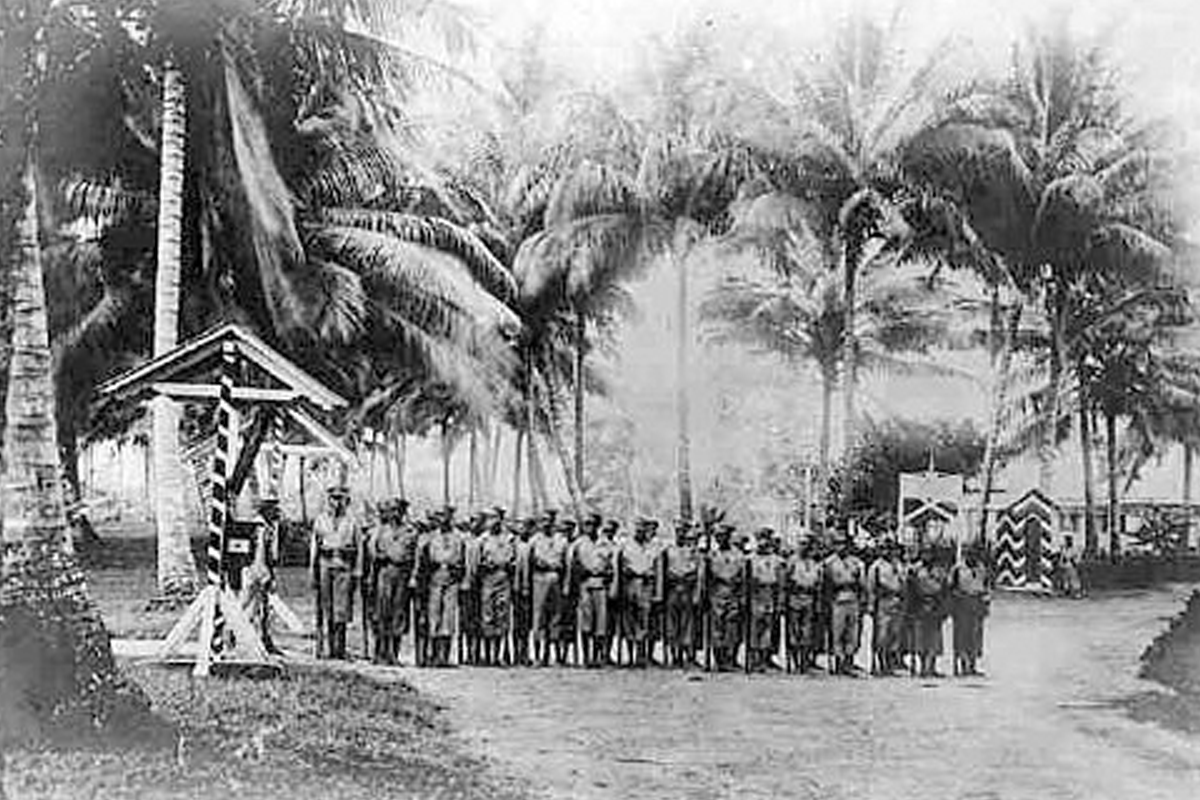 В северо-восточной части Новой Гвинеи в 1884 году Немецкая Новогвинейская компания взяла на себя управление этой частью острова и дала ей название Земля Кайзера Вильгельма. Кроме того, в управление была включена группа островов к северо-востоку от нее, которая позже стала известна как архипелаг Бисмарка. В 1899 году территория стала охраняемой территорией Германской империи и имела общую площадь 235 700 км2. Германская Новая Гвинея, несомненно, была наименее изученной территорией среди немецких колоний. При площади суши в 180 500 км2 в начале войны на этой огромной территории проживало всего 900 белых жителей, в том числе 700 немцев. Как и в других охраняемых территориях Германии, за исключением Германской Восточной Африки, в Германской Новой Гвинее рейхсмарка считалась действительным платёжным средством. Параллельно с этим местные жители всё ещё использовали традиционные деньги в виде раковин каури. Как и почти везде в мире, с началом Первой мировой войны ситуация в Кайзер-Вильгельмсл