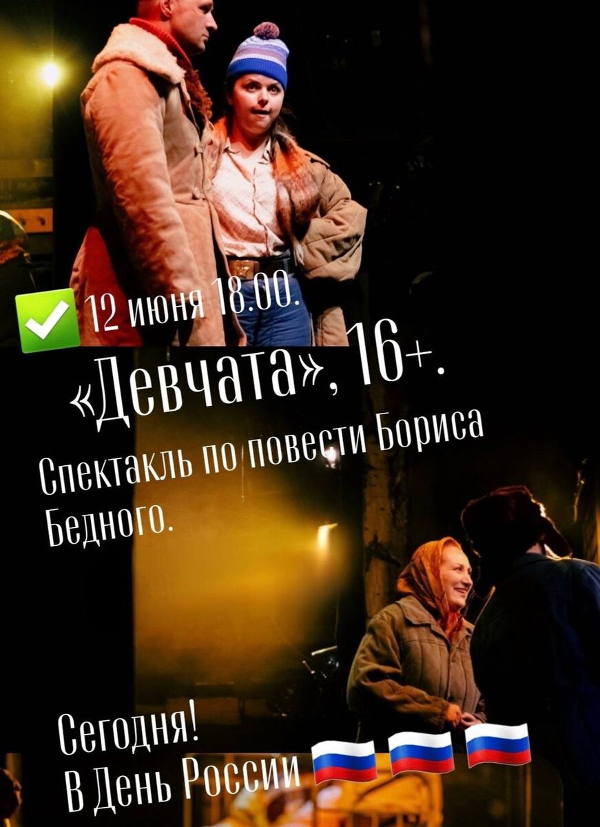 Ежегодно 12 июня отмечается День России 🇷🇺 Россия — страна бескрайних просторов и счастливых людей; государство с уникальной и многогранной культурой, непростой историей и великим будущим; место, где хочется жить, любить, работать и творить… Желаем вам успехов во всех начинаниях, личных и профессиональных побед, мирного неба над головой. Пусть каждый новый день дарит улыбки и радости встреч, сотни возможностей для развития и самореализации! ✅ 12 июня 18:00. ПРЕМЬЕРА «Девчата», 16+. Спектакль по повести Бориса Бедного. Билеты 👉🏼 vk.cc/cMFBpH. С праздником, с Днём России 🤍 puppetworld.ru #Тверскойтеатркукол #Всеиграютвкуклы