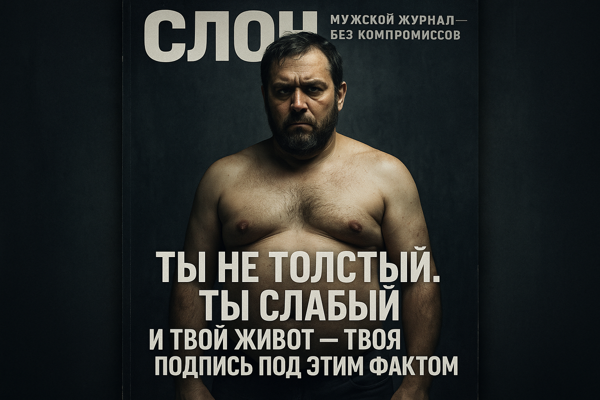 Ты можешь сожрать пол пиццы под сериал, но не можешь выдержать 10 отжиманий без одышки и нытья. И вот этот валик, который ты называешь животом — это не просто жир. Это автограф.