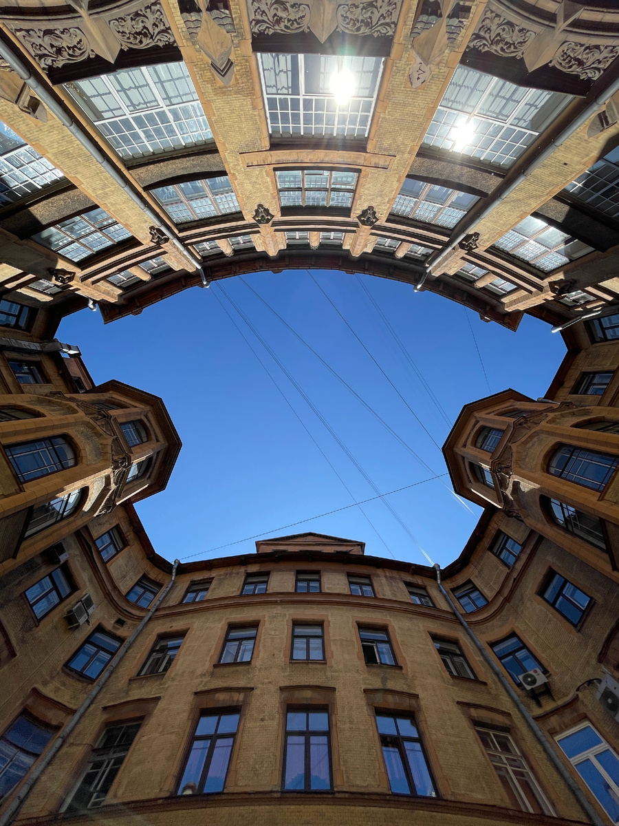Это не центр, но оглядываясь по сторонам, вы ни на секунду не усомнитесь, что находитесь в Петербурге. Здесь совсем не многолюдно (особенно если не подходить близко к Мариинке). На этом этапе рекомендую вам замедлить шаг. Радикально замедлить. И обернуться.