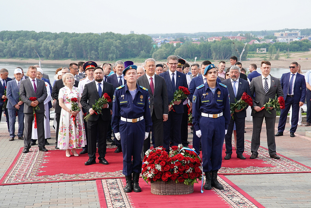 12 июня в Башкортостане отмечается сразу три знаменательные даты: День России, годовщина Уфы, которой исполнился 271 год, и день рождения национального героя и поэта Салавата Юлаева. Радий Хабиров, глава республики, принял участие в торжествах, посвящённых этим событиям. В начале праздничной программы руководитель региона возложил цветы к Монументу Дружбы, который был воздвигнут в честь 400-летия добровольного присоединения Башкирии к Русскому государству. Монумент, заложенный в 1957 году и открытый в 1965 году, олицетворяет единство и братство русского и башкирского народов. В церемонии приняли участие высокопоставленные лица, в том числе председатель Минского горисполкома Владимир Кухарев, члены правительства Башкортостана, депутаты Государственного Собрания – Курултая, представители муниципалитета, министерств и ведомств, а также уважаемые жители Уфы и общественные деятели. Радий Хабиров и гости также возложили цветы к стеле «Уфа – город трудовой доблести», которая была открыта в но