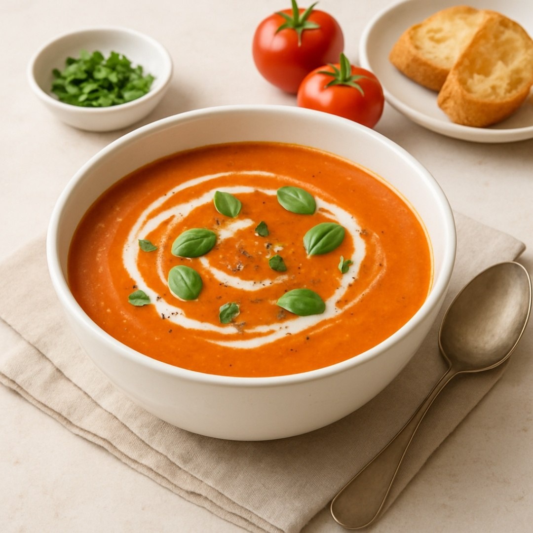 Томатный крем-суп Ингредиенты⤵️ 🔸Помидор — 500 г 🔸Лук репчатый — 1 шт. 🔸Чеснок — 2 зубчика 🔸Бульон овощной — 500 мл 🔸Сливки 20% — 100 мл 🔸Оливковое масло — 2 ст.л. 🔸Соль, перец, базилик — 1 щепотка 🔸Сахар — 1 ч.л. Приготовление🍅 1. Лук и чеснок обжарить на масле до прозрачности. 2. Добавить нарезанные помидоры, тушить 10 минут. 3. Влить бульон, варить 15 минут. 4. Пюрировать блендером. 5. Добавить сливки, прогреть (не кипятить). 6. Приправить специями. Рецепт дня #томатный_суп #крем_суп #помидор #сливки #вегетарианский_суп #летний_суп #обед