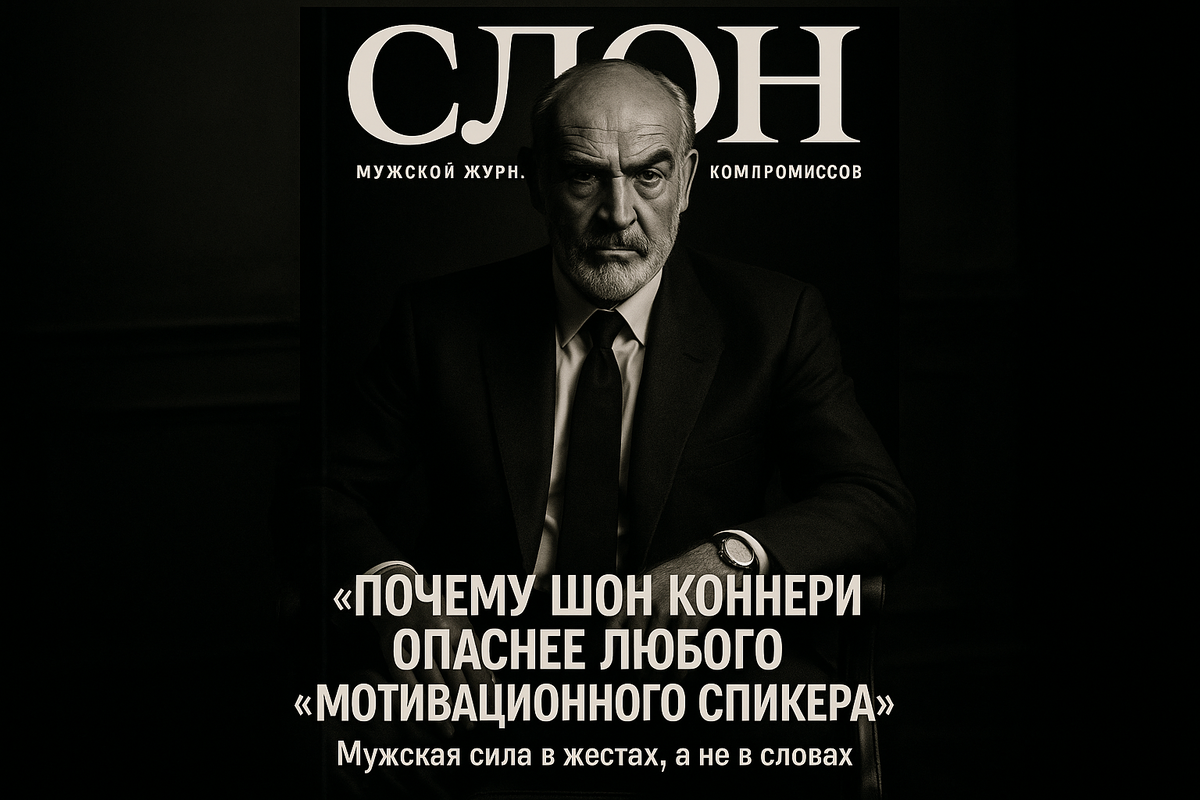 Мужская сила в жестах, а не в словах. И он это знал. Ты видел, как он молчал? Не нёс ахинею про "будь лучшей версией себя", не размахивал руками, не зачитывал цитаты Стива Джобса, стоя на фоне проектора в WeWork'е. Он просто заходил в кадр. Поднимал бровь. Смотрел. И этого хватало. Шон Коннери был не просто актёром. Он был последним мужчиной, который умел молчать так, что у собеседника слипались слова от страха. Он не вызывал — он звал. Он не уговаривал — он смотрел, и ты шёл. Потому что за этим взглядом стояла тишина, в которой был порядок. Сегодня так больше не умеют. Сейчас каждый второй — коуч. Каждый третий — лидер. А каждый первый — трещотка.