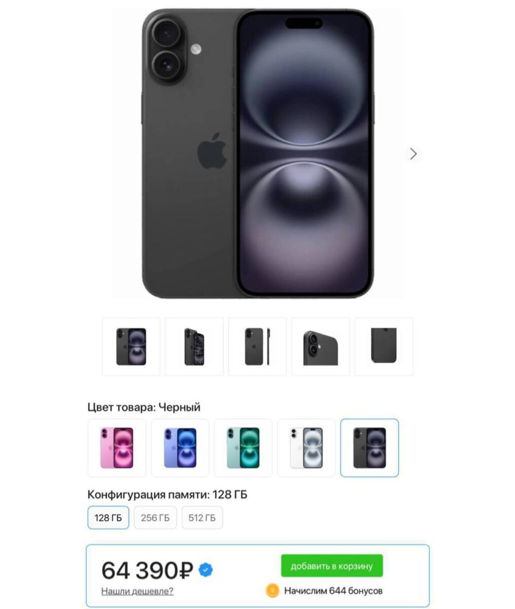 iPhone 16 Plus подешевел в 2 раза — теперь его можно купить за 64.000₽. На старте продаж цена составляла 134 тысячи.