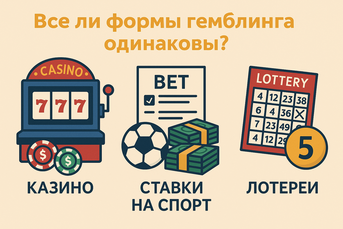 Когда говорят о лудомании — игровой зависимости — чаще всего имеют в виду абстрактную «тягу к азартным играм». Однако виды гемблинга различаются, и вместе с ними — механизмы зависимости, скорость её развития и причиняемый вред. Игровые автоматы, рулетка, карточные игры в онлайн-казино — это самые «агрессивные» формы азартных игр. Казино — это «спидран» в мир зависимости. Здесь нет пауз: результат каждой ставки известен мгновенно, а значит, игроку сложнее остановиться. Ставки на спорт часто кажутся более «рациональными»: люди анализируют матчи, статистику, следят за трансляциями. Но это лишь видимость контроля. Такая зависимость более социально приемлема и часто дольше не распознаётся ни самим игроком, ни его окружением. Лотереи — самая «тихая» форма гемблинга. Вроде бы ничего страшного: купил билет — подождал — проиграл. У лотерей — низкая частота игры, но высокая степень иллюзии: кажется, что это «безопасно». Тем не менее, уязвимые группы (пенсионеры, люди с низким доходом) часто оказ