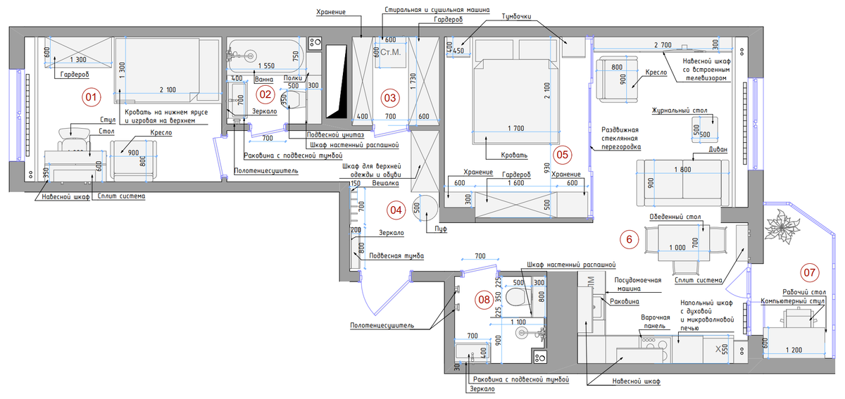 ✔️ Обсуждение задач ✔️ Заполнение технического задания и подбор аналогов ✔️ Выбор необходимых услуг и подписание договора ✔️ Замер объекта производится дизайнером (от 3 тыс. руб.), заказчиком самостоятельно или с привлечением третьих лиц (от 300 руб. за м2) ✔️ 3 варианта плана расстановки мебели и сантехнического оборудования ✔️ Доработка выбранного варианта ✔️ План демонтируемых конструкций ✔️ План возводимых конструкций ✔️ План квартиры после перепланировки с экспликацией помещений (от 200 руб. за м2) ✔️ Выбор цветового решения с помощью подборки цветовых палитр ✔️ Выбор стиля с помощью подборки фотографий отделки, предметов мебели и элементов декора (от 500 руб. за м2) ✔️ Фотореалистичные 3D изображения интерьера на основе согласованного технического задания, цветовой палитры и планировочного решения ✔️ До четырех ракурсов на каждое помещение (от 500 руб. за м2) ➖ План сантехники ➖ План освещения ➖ План электрики ➖ Спецификация механизмов ➖ План управления освещени