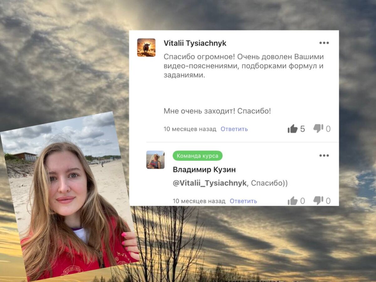 Неожиданная находка! Обновляя курс на Степике, обнаружила старый комментарий ученика — пропущенный 10 месяцев назад. Такие моменты наполняют теплом и вдохновляют! «Спасибо огромное! Очень доволен Вашими видео-пояснениями, подборками формул и заданиями.»