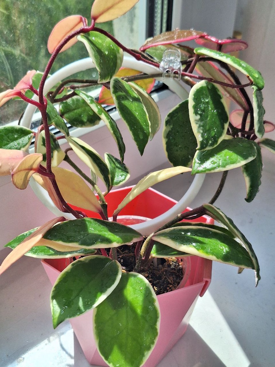 Самая красивая из моих хойек - фламинго дрим❤️ Когда увидела эту красотку в первый раз, то сразу решила, что она должна быть в моей коллекции. Это при том, что она была еще маленькая и такого разноцветия листьев не было. Каково было моё удивление, когда она по мере роста начала выдавать то бело-зеленые, то розово-зеленые, то розовые, то почти полностью белые, то какие-то темно-розовые листья. Весной немножко её почикала, и некоторое время на неё был прям бешеный спрос. Оказалось, что это не самый распространенный вид и её ещё надо поискать. Не спешу её сильно обрезать, так как растёт она не супер быстро. Относительно других растений этого не скажешь, а вот по сравнению с другими хойями чемпионкой по росту ей точно не стать. А вы любите хойи? Какая ваша любимая? #комнатныерастениятамбов #хойяфламинго