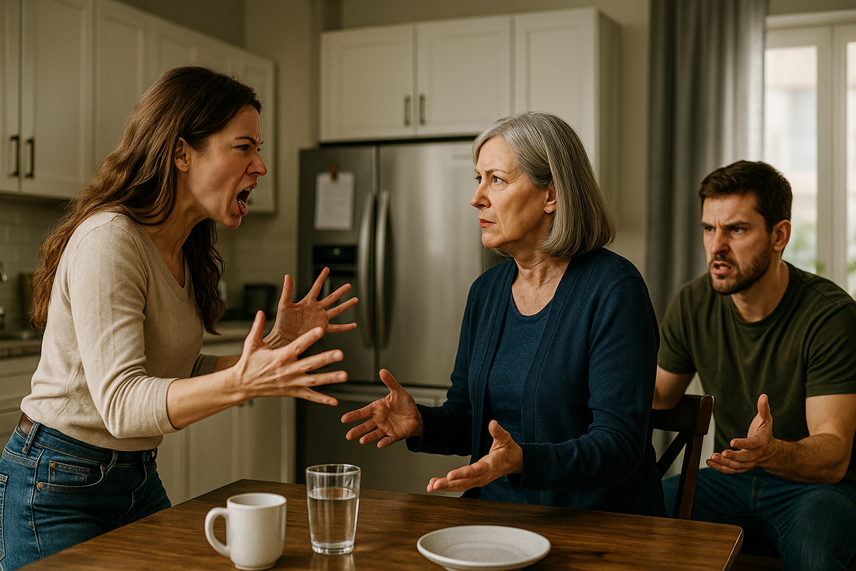 Мама села за стол, сложив руки — её фирменный знак пассивной агрессии. Андрей сидел в углу, уставился в телефон.