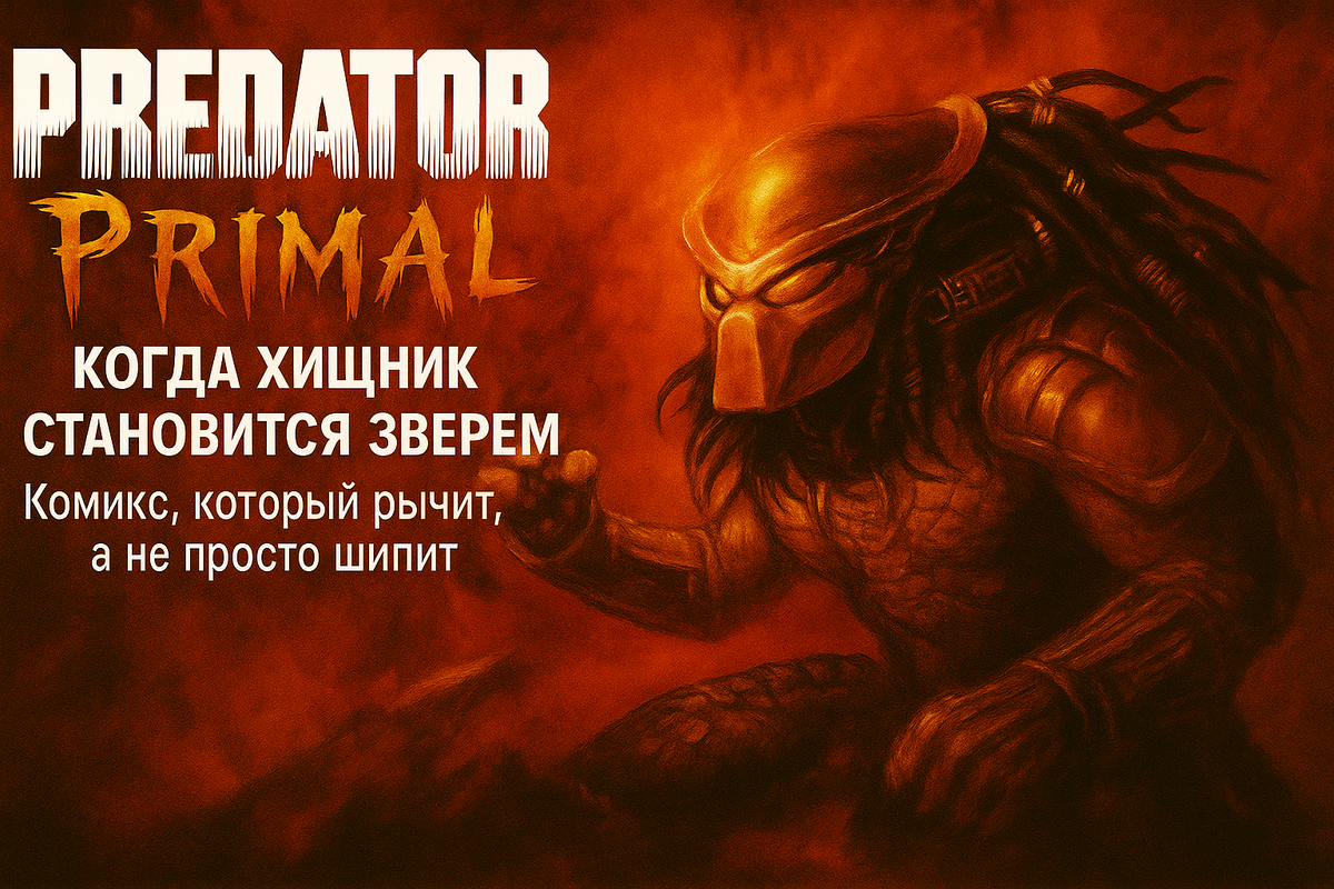 “Иногда, чтобы понять настоящую силу, нужно столкнуть хищника с ещё более жестоким зверем…” И сердце замирает. Пальцы цепляются за плотную, слегка шершавую обложку с клыками шрифта PRIMAL. А на ней — он. Бессменный охотник. Тот самый, кто когда-то гонялся за Арнольдом в джунглях. Только теперь — у него новый трофей на примете. И это не люди. Predator: Primal — это мини-серия из двух выпусков (у тебя в руках #1), от мастеров своего дела:
