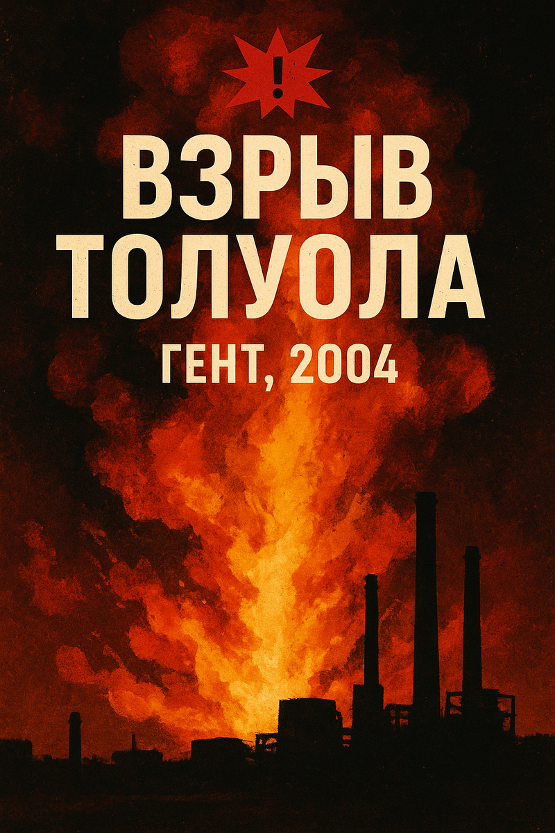 Всё из-за того, что никто не знал: в толуоле был смертельный "сюрприз". Фармацевтическое предприятие в Генте производило промежуточные продукты для лекарственных веществ. Одна из стадий процесса — работа с толулом (C₇H₈): Сушка толуола проводилась в стеклянном реакторе под атмосферным давлением с нагревом. В день аварии: Через ~15 минут: Искра — предположительно от термопары или статического электричества. Результат: Комиссия установила: ✅ Остатки катализатора не были должным образом удалены;