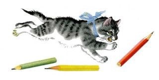 Не было в доме мышей, а было много карандашей. Лежали они на столе у папы и попали котёнку в лапы. Как помчался он вприпрыжку, карандаш поймал, как мышку, И давай его катать — Из-под стула под кровать, От стола до табурета, От комода до буфета. Подтолкнёт — и цап-царап! А потом загнал под шкап. Ждёт на коврике у шкапа, Притаился, чуть дыша… Коротка кошачья лапа, — Не достать карандаша!