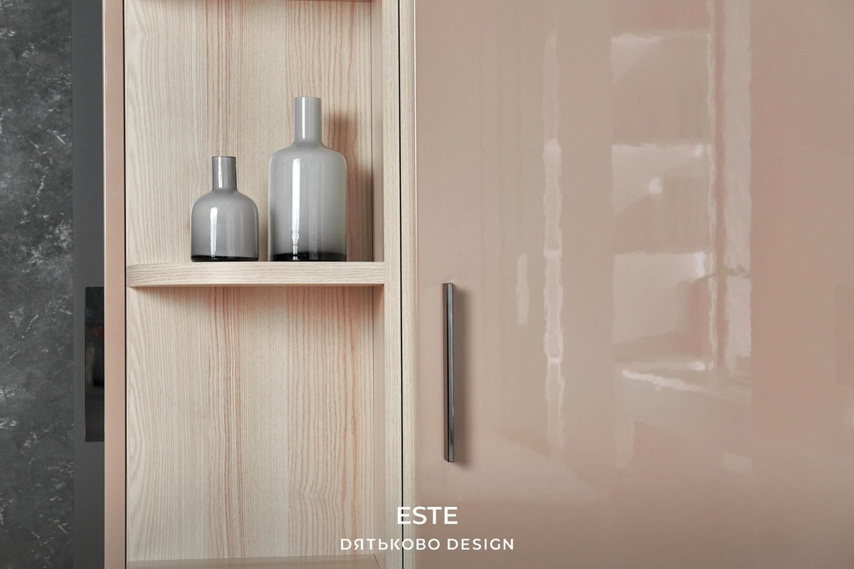 Особого внимания заслуживает наша коллекция ESTE с высокоглянцевой отделкой Mokko. Этот роскошный блеск придает мебели изысканный вид и становится настоящим украшением любого интерьера.