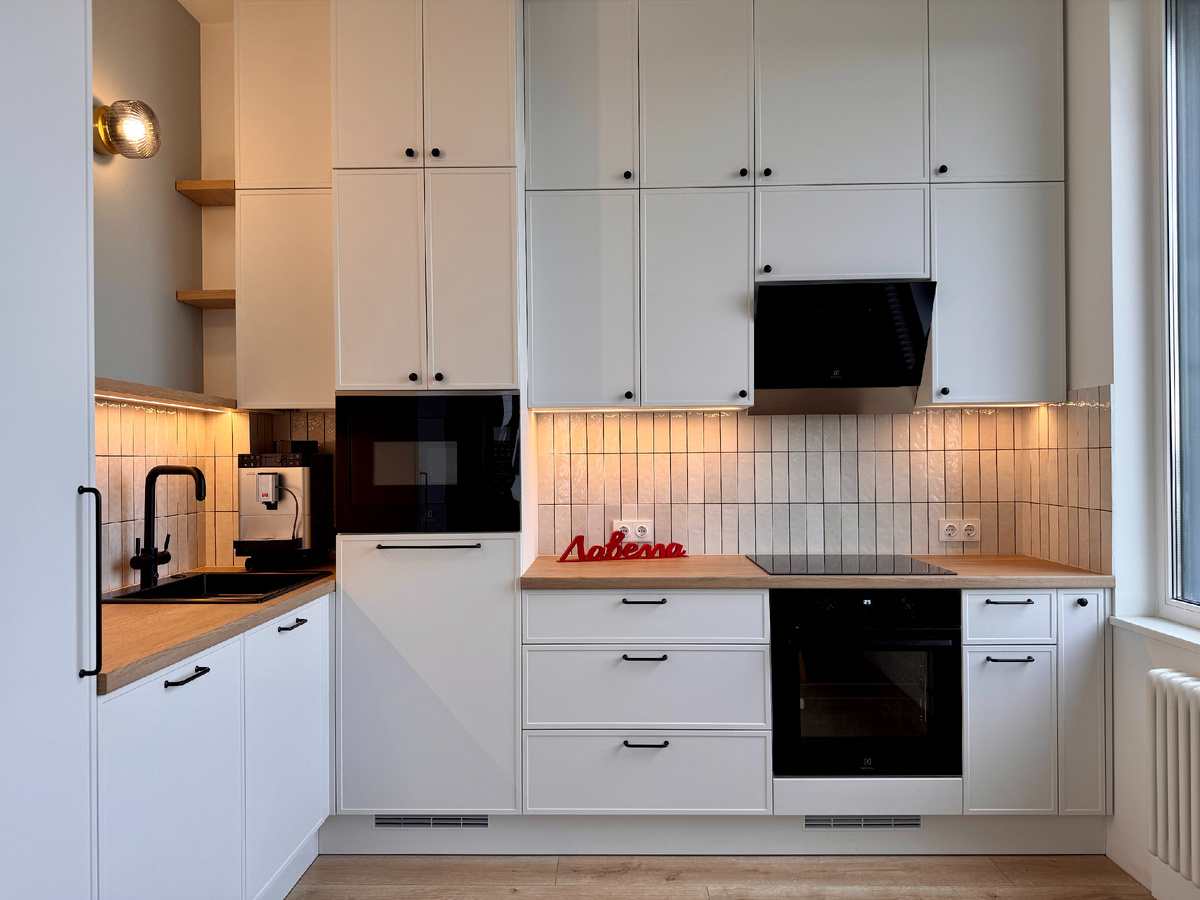 Добавьте немного тёплого дерева, и кухня сразу станет живой. Совет: выбирайте фасады в оттенке тёплого белого (молочный, льняной), а столешницу — из светлого дуба или кварца. На скандинавской кухне нет громоздких буфетов, открытых банок с крупами и висящей техники. Здесь продумано всё до сантиметра: выдвижные ящики, органайзеры, ре