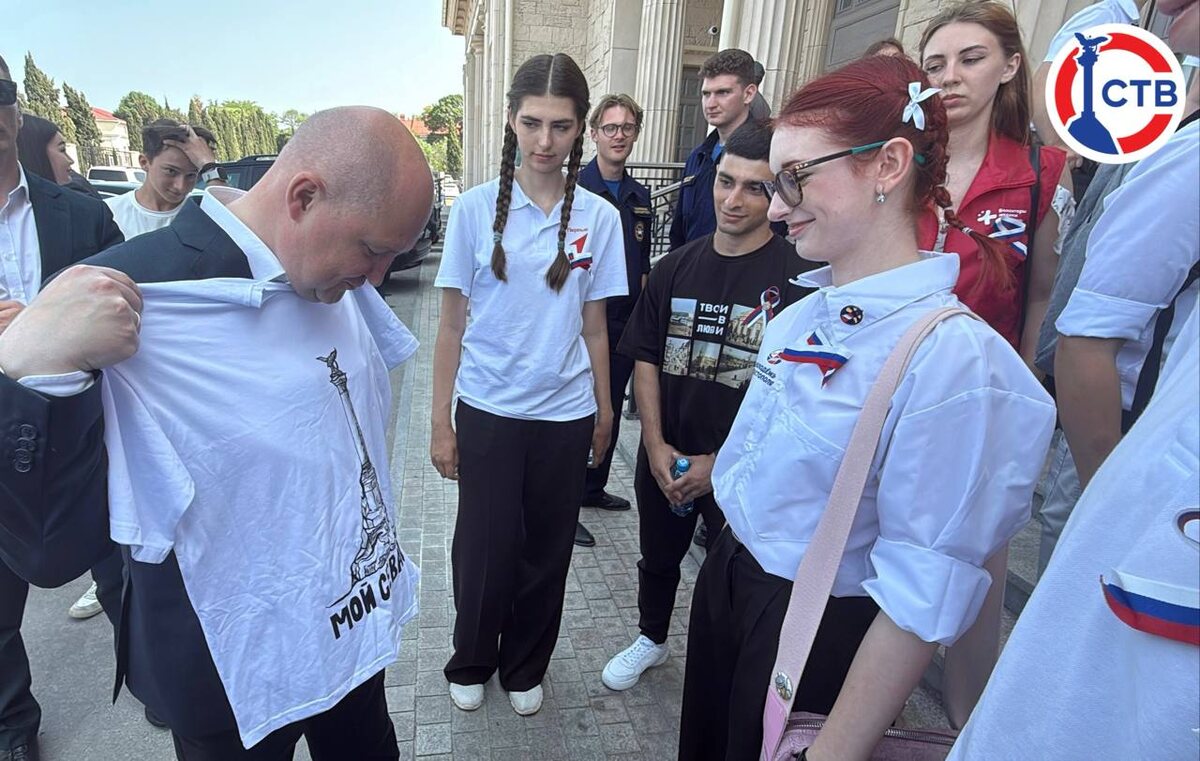 В ответ на пост 📢 В честь Дня России активистка «Движения Первых» подарила губернатору Севастополя Михаилу Развожаеву футболку Алиса Шпанберг — юная художница. В прошлом году она выиграла грант на проведение собственной «Арт-лаборатории» и теперь учит сверстников рисовать на одежде. 📺 Подписывайтесь на СТВ