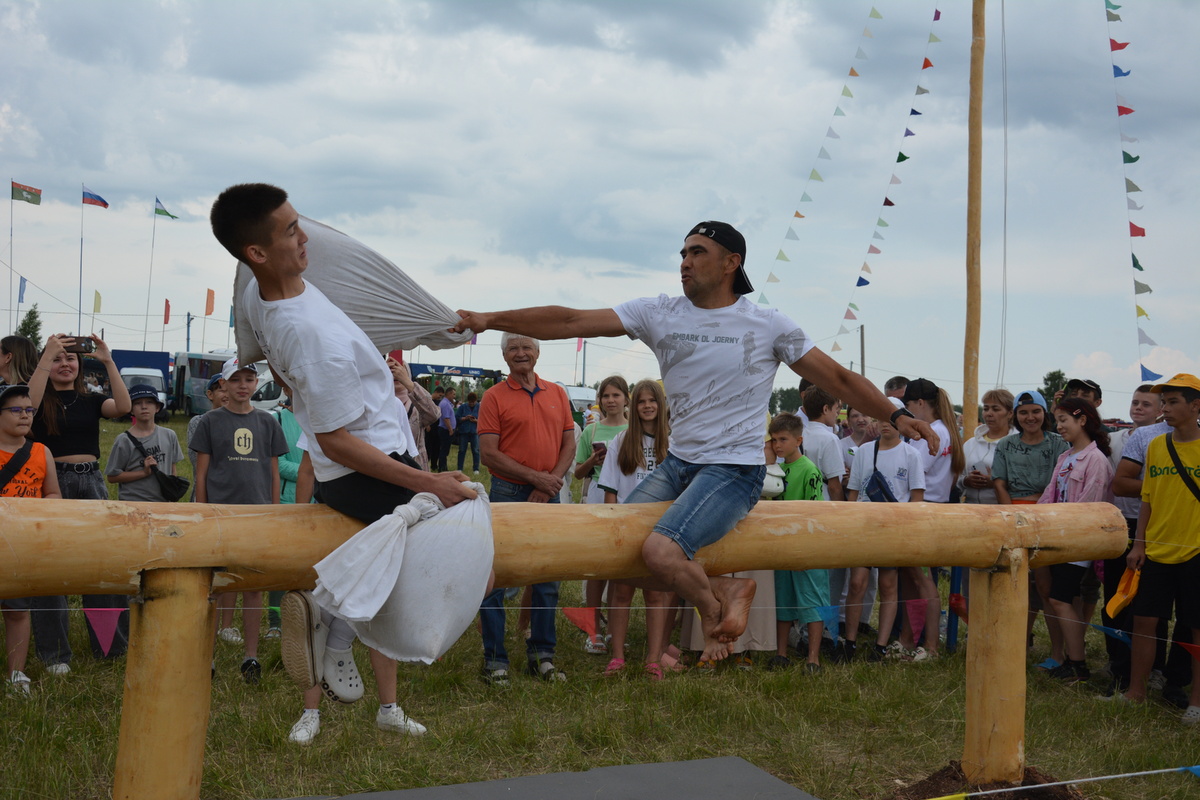 Традиционные игры покорили сердца гостей праздника На празднике Сабантуй с большим успехом прошли традиционные народные игры, которые уже много лет любимы и взрослыми, и детьми. Участники и гости соревновались в восхождении по наклонному бревну, подъёме по вертикальному шесту, бое мешками на бревне, беге в мешках, хоббихорсинге, беге с коромыслом, разбивании горшка и других забавах. Житель Новоаккулаево Рафис Фазылов установил новый личный рекорд, взобравшись на вертикальный шест за 33 секунды, и стал чемпионом, завоевав сабельную пилу.