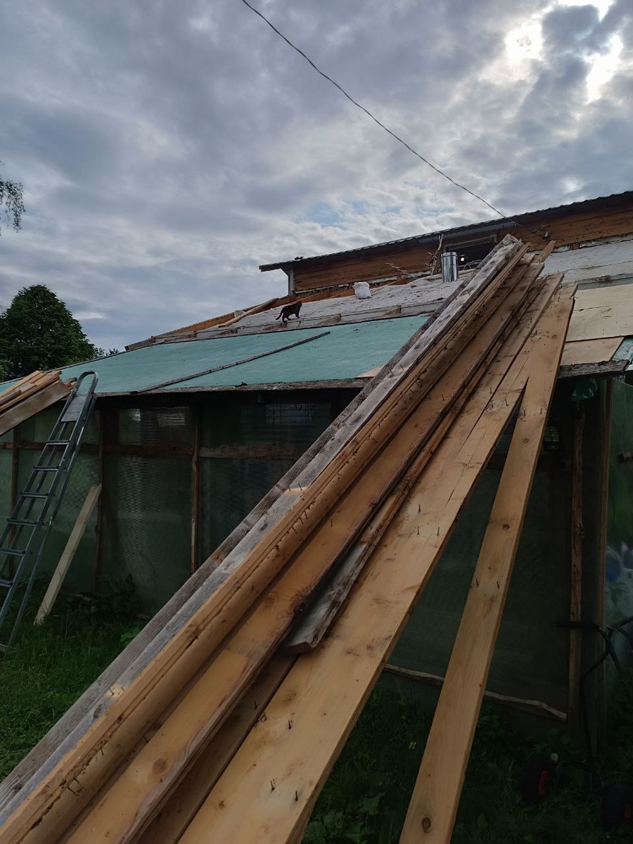 Как хорошо , что сегодня не было дождя и под вечер выглянуло солнышко. Половину крыши сняли, завтра с новыми лагами , со всеми нужными делами она будет возвращена на место.К воскресенью они уже утеплят и подошьют ее. Сегодня уже приехал утеплитель , пока 30 упаковок, доски и мембрана.Я даже боюсь подумать и представить, но по всем расчетам до середины июля( если конечно погода не подведёт) дом будет утеплен. Греет душу момент того , что ещё будет как минимум пара месяцев полноценно подготовиться к зиме.А ещё сегодня произошло чудо, о нем отдельно.