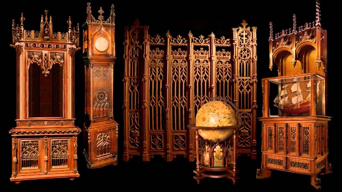 - Готическое возрождение в мебели: под влиянием архитекторов вроде Огастеса Пьюджина
