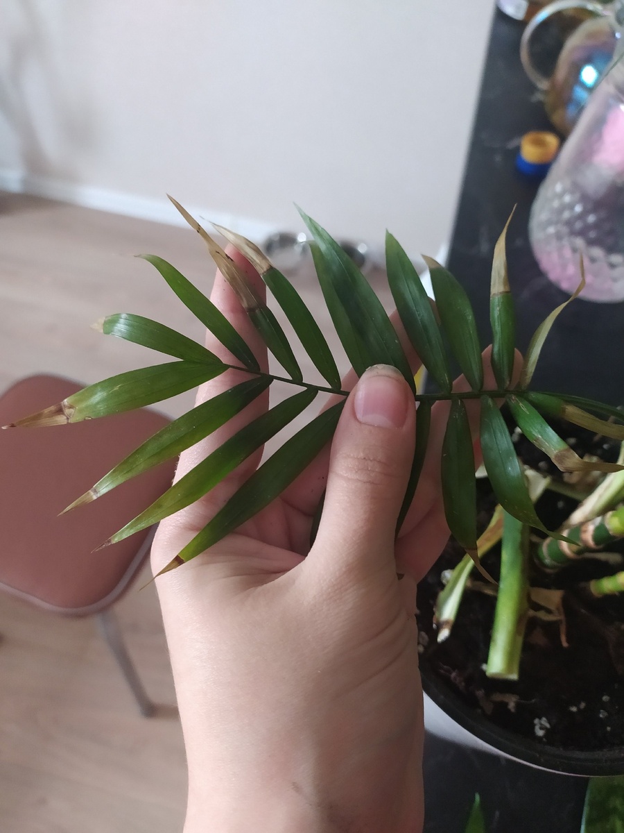 Всем доброго дня Опускаются руки с этой хамедореей уже Корни не гниют, пересаживала, проверяла-все отлично На стволах смола, листья сохнут Вредителей никаких не заметила А если лист старый отрываю от ствола-внутри всё в гнили Что это может быть? Полив умеренный-как верхняя часть грунта просыхает, удобрения раз в 2 недели, стоял на солнце-горел, убрала в место с рассеяным светом настало улучшение, вроде пошёл расти, теперь опять эта история Три месяца назад из-за такой же истории пересаживала, горшок взяла меньше, но сути не изменило Растению лет 8 Всю густоту при переезде потерял года 4 назад, теперь вот никак не наберёт обьем