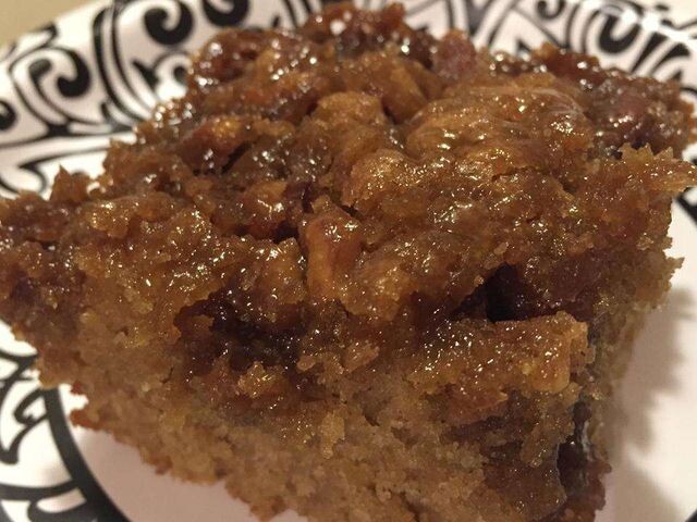 Кофейный торт Этот похожий на пирог хлеб - идеальное дополнение к утренней чашке кофе. ⌛ Подготовка: 15 мин. ⏰ Приготовление: 55 мин. 🍴 Количество: 1 - 20x30 см. сковорода Ингредиенты ✅ ✅ ⅔ чашки растительного масла ✅ 2 яйца ✅ 2 чашки цельнозерновой муки ✅ 1 ½ чайной ложки молотой корицы ✅ ½ чайной ложки пищевой соды ✅ 2 чайные ложки пекарского порошка ✅ ½ чайной ложки соли ✅ 1 чашка белого сахара ✅ 1 чашка измельченных орехов пекан ✅ 1 чашка изюма ✅ 1 чашка рассыпчатого коричневого сахара ✅ 3 столовые ложки цельнозерновой муки ✅ 1 чайная ложка молотой корицы ✅ ¼ чашки маргарина, размягченный ✅ ½ чашки маргарина ✅ ¼ чашки молока ✅ 1 чашка рассыпчатого коричневого сахара Инструкция приготовления 1. Разогрейте духовку до 175 градусов C. Смажьте жиром и слегка посыпьте мукой форму для выпечки размером 9х35 см. 2. Смешайте вместе масло и взбитые яйца. 3. Смешайте вместе муку, корицу, пищевую соду, пекарский порошок, соль и белый сахар. Перемешайте орехи и изюм. Добавьте мучную