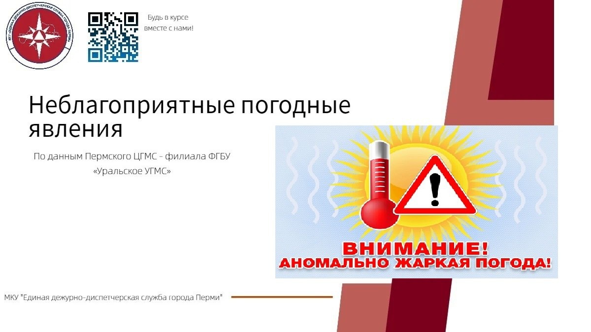 По данным ЦГМС 13 июня в отдельных районах Пермского края ожидается гроза, местами высокая пожарная опасность, по востоку в отдельных районах чрезвычайная пожарная опасность. В связи с прогнозируемыми опасными метеорологическими явлениями, связанных с аномально жаркой погодой и высокой пожарной опасностью, ГУ МЧС России по Пермскому краю рекомендует соблюдать требования пожарной безопасности. В случае обнаружения пожара необходимо: 1. Немедленно сообщить в пожарную охрану по номеру «101» 2. Принять меры по эвакуации людей, а при условии отсутствия угрозы жизни и здоровью - меры по тушению пожара в начальной стадии. Если вы заметили небольшое возгорание, необходимо принять немедленные меры, чтобы остановить его и одновременно, по возможности, отправить кого-нибудь в ближайший населенный пункт или лесничество за помощью, сообщить по телефону: 8-800-100-94-00 (круглосуточно). Вызов экстренных служб «112»