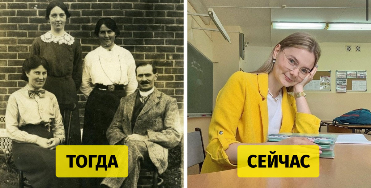 Наука и искусство беспрерывно движется вперед, человечество периодически совершает прорывы. Но в контексте глобальных вещей мы задумываемся над тем, как менялись профессии, которые каждому из нас знакомы. Некоторые из них следуют давним традициям, но все же видоизменяются под влиянием внешнего мира. Часть из них меняются весьма кардинально. Давайте сравним фотографии людей, а точнее их специальности, начала ХХ века и их современных коллег. На снимке слева учителя из Новой Зеландии, сделана примерно в 1910-м, а справа – современный учитель. Первая фотография демонстрирует актрису Марлен Дитрих, ставшую символом своего времени (снимок из фильма 1930 года «Голубой ангел»). На второй фотографии нам показана Кэрри Фишер, её образ принцессы Леи стал неотъемлемой частью культуры. Слева на фото от 1920-го Джо Тюилье, который был ирландским шеф-поваром. На современной фотографии изображён шеф-повар греческого ресторана. В наше время нет необходимости ходить по улицам с товарами (к