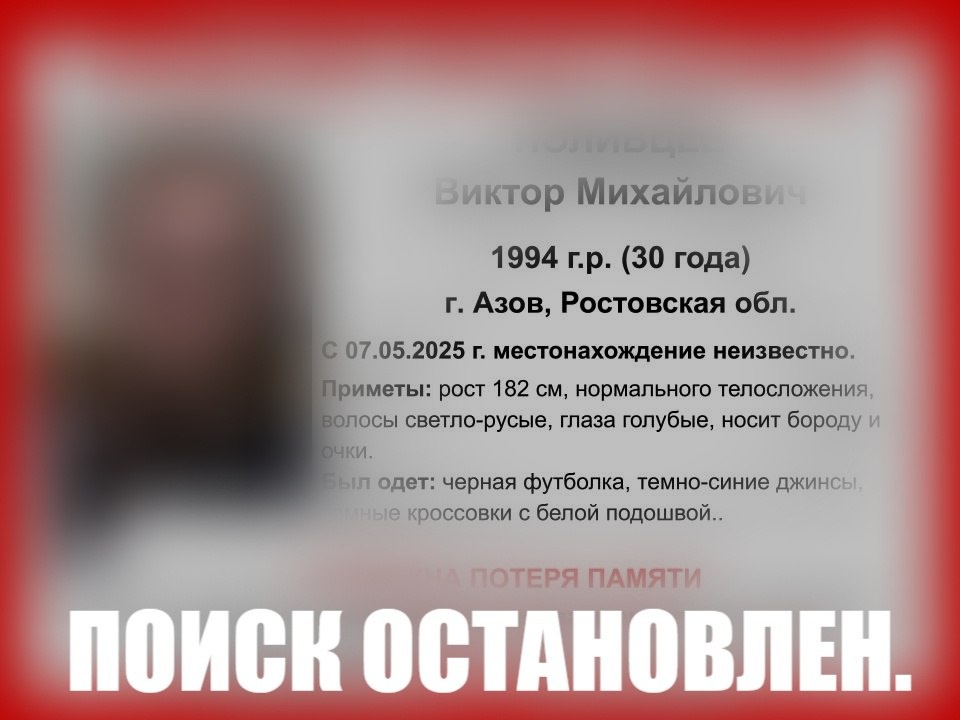UPD: По состоянию на 16.06.2025 г. поиск остановлен. UPD: Стоп, проверка информации. Внимание! Обновленная ориентировка! #Поливцев Виктор Михайлович, 1994 г.р. (30 лет) г. #Азов, #Ростовская обл. С 07.05.2025 г. местонахождение неизвестно. Всех, кто обладает информацией о пропавшем, просим сообщить по телефону бесплатной горячей линии 88005501054 или 112. Если вы готовы помогать в поиске пропавших без вести, приглашаем присоединиться к телеграмм-каналу оповещения: t.me/poisk_161