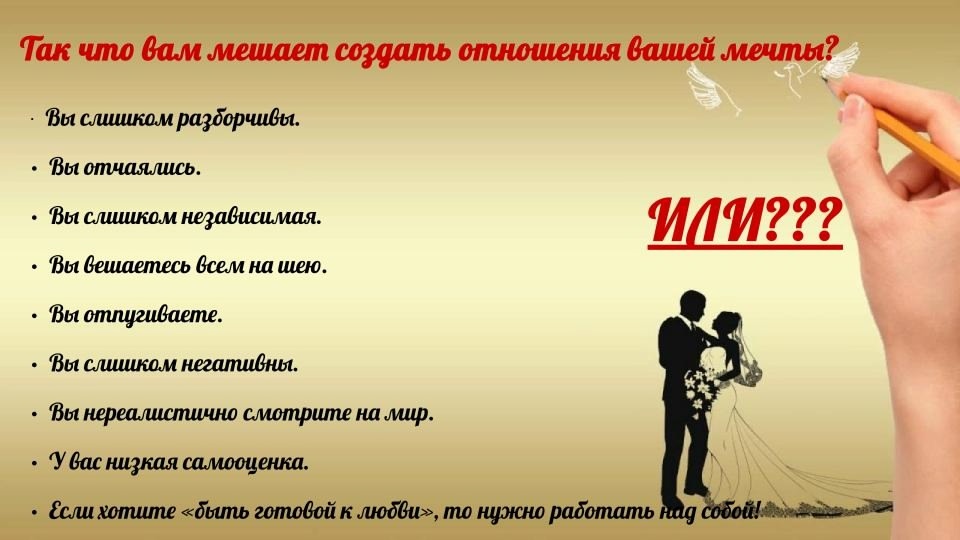 - Если хотите «быть готовой к любви», то нужно работать над собой!