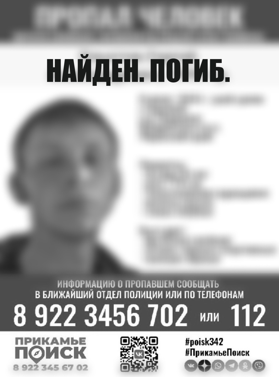 UPD: НАЙДЕН. ПОГИБ. ХЛЫСТОВ СЕРГЕЙ АЛЕКСАНДРОВИЧ, 1995 г.р. Всем спасибо за помощь. Просьба снять репосты. ПРИНОСИМ СВОИ СОБОЛЕЗНОВАНИЯ РОДНЫМ И БЛИЗКИМ. #ПрикамьеПоиск #poisk342
