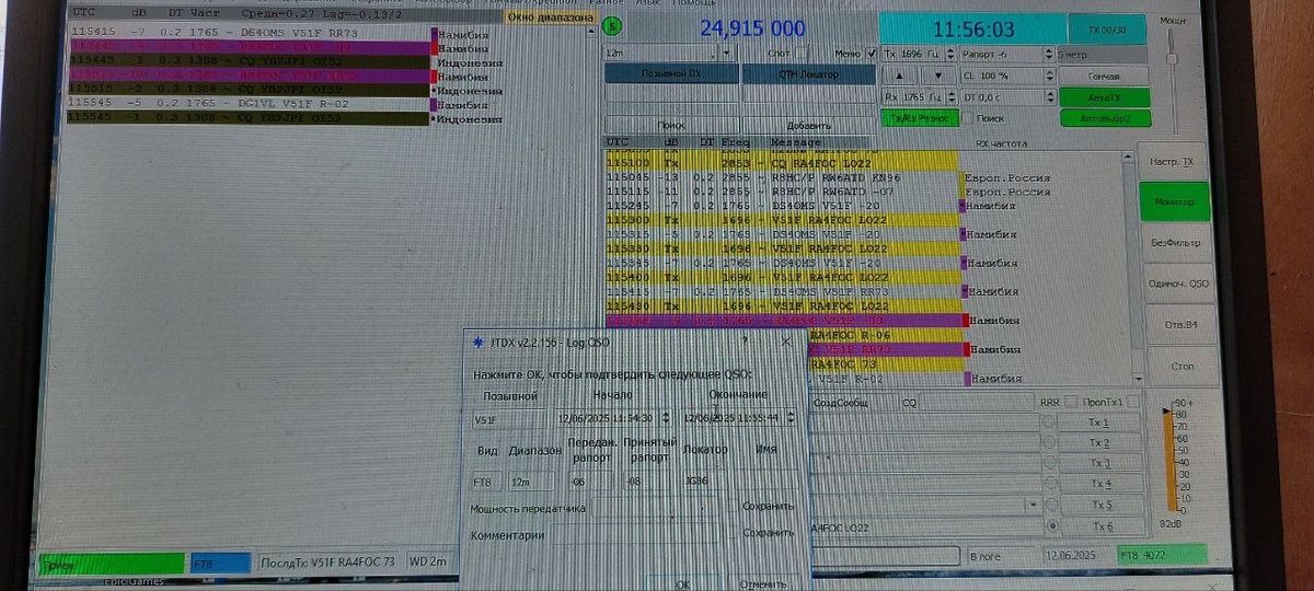 Намибия в логе. В условиях, когда, сегодня 12 июня около 13-00 МСК, в результате разразившейся магнитной бури закрылось прохождение на ВЧ диапазонах, результат неплохой.