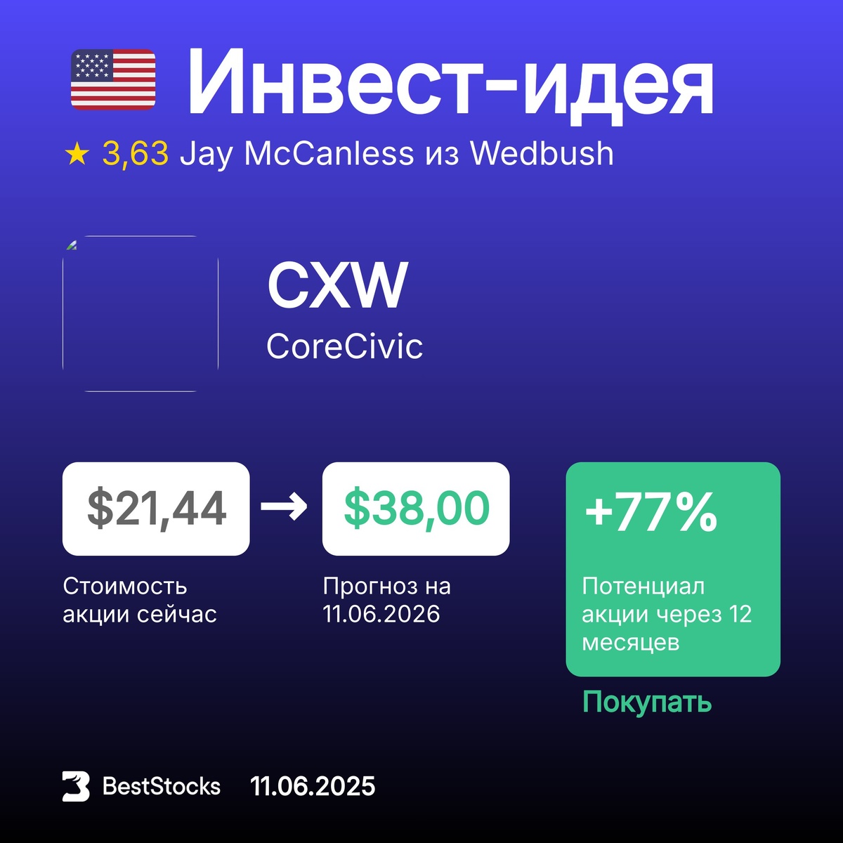 πΊπΈ ΠΠ½Π²Π΅ΡΡ-ΠΈΠ΄Π΅Ρ ΠΏΠΎ Π°ΠΊΡΠΈΠΈ CoreCivic Π’ΠΈΠΊΠ΅Ρ: CXW ΠΡΠΎΠ³Π½ΠΎΠ·Π½Π°Ρ ΡΠ΅Π½Π°: $38 (+77%) Π Π΅ΠΊΠΎΠΌΠ΅Π½Π΄Π°ΡΠΈΡ: ΠΠΎΠΊΡΠΏΠ°ΡΡ InvestRank Π°ΠΊΡΠΈΠΈ: 2 ΠΈΠ· 10 ΠΡΠΎΠ³Π½ΠΎΠ· ΡΠ΄Π΅Π»Π°Π½: 11.06.2025 ΠΡΠΎΠ³Π½ΠΎΠ· Π΄ΠΎ: 11.06.2026 ΠΠ½Π²Π΅ΡΡ-ΠΊΠΎΠΌΠΏΠ°Π½ΠΈΡ: Wedbush ΠΠ½Π°Π»ΠΈΡΠΈΠΊ: Jay McCanless ΠΡΡ ΡΠ΅ΠΊΠΎΠΌΠ΅Π½Π΄Π°ΡΠΈΠΈ Π½Π° ΡΠ΅Π³ΠΎΠ΄Π½Ρ β β’β’β’β’β’ π― ΠΡ Π·Π½Π°Π»ΠΈ, ΡΡΠΎ Π² ΡΠ°Π·Π΄Π΅Π»Π΅ Ρ ΠΊΡΠΈΠΏΡΠΎΠ²Π°Π»ΡΡΠ°ΠΌΠΈ ΠΌΠΎΠΆΠ½ΠΎ ΡΠ·Π½Π°ΡΡ ΡΠ΅Π½Ρ, Π΄ΠΈΠ½Π°ΠΌΠΈΠΊΡ ΠΈ ΠΊΠ»ΡΡΠ΅Π²ΡΠ΅ ΠΏΠΎΠΊΠ°Π·Π°ΡΠ΅Π»ΠΈ ΠΏΠΎ ΠΊΠ°ΠΆΠ΄ΠΎΠΉ ΠΈΠ· Π΄ΠΎΡΡΡΠΏΠ½ΡΡ