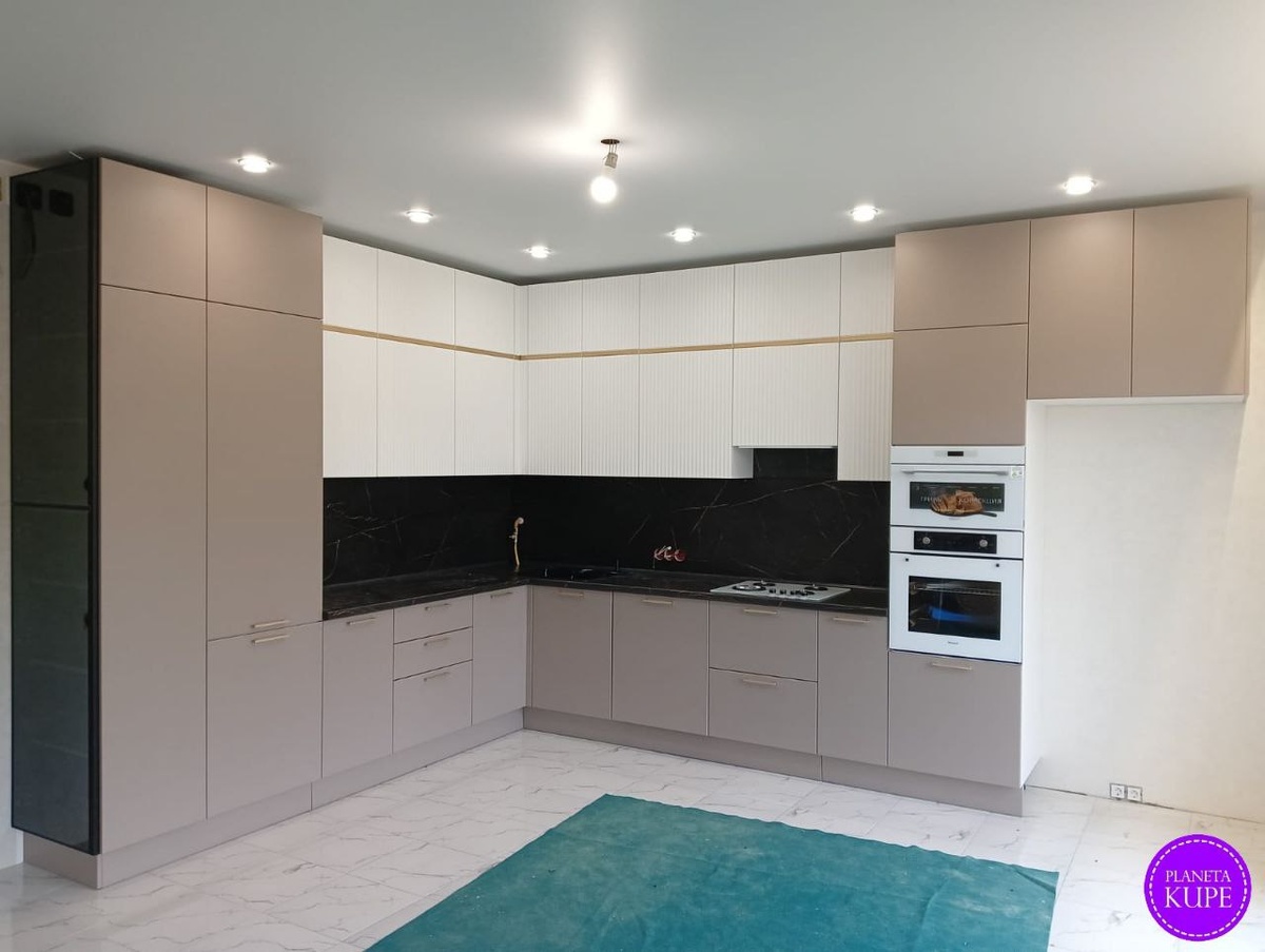 Выполнили новый заказ — кухню для нашей клиентки из Тосненского района Ленинградской области! Размер кухни: 3160 × 4350 мм Корпус: ЛДСП ЧФМК серый, пенал со стеклом венге Фасады: МДФ эмаль матовая + МДФ плёнка • навесные шкафы и антресоли — RAL 9003 Signal white, фрезеровка ВОЛНА, патина золото • низ и пеналы — МДФ плёнка Лайн Шале Столешница и стеновая панель: Скиф 38 мм, №73 Каспий чёрное золото Оснащение: • навесные шкафы 720 + 460 мм • витрина в чёрной рамке ПР-10, стекло бронза • сушилка для посуды 800 мм • газлифты, PUSH, петли GTV и Blum • ящики тандембоксы Боярд (5 шт.) • цоколь и фальш боковины в цвет фасада • светодиодная подсветка рабочей зоны и пенала со стеклом Хотите кухню на заказ? Пишите нашим менеджерам @planeta_kupe или в чат-бот @planetakupe_bot! #ПланетаКупе #КухняНаЗаказ #МебельСПб #МебельНаЗаказ Всех с праздником! 🇷🇺