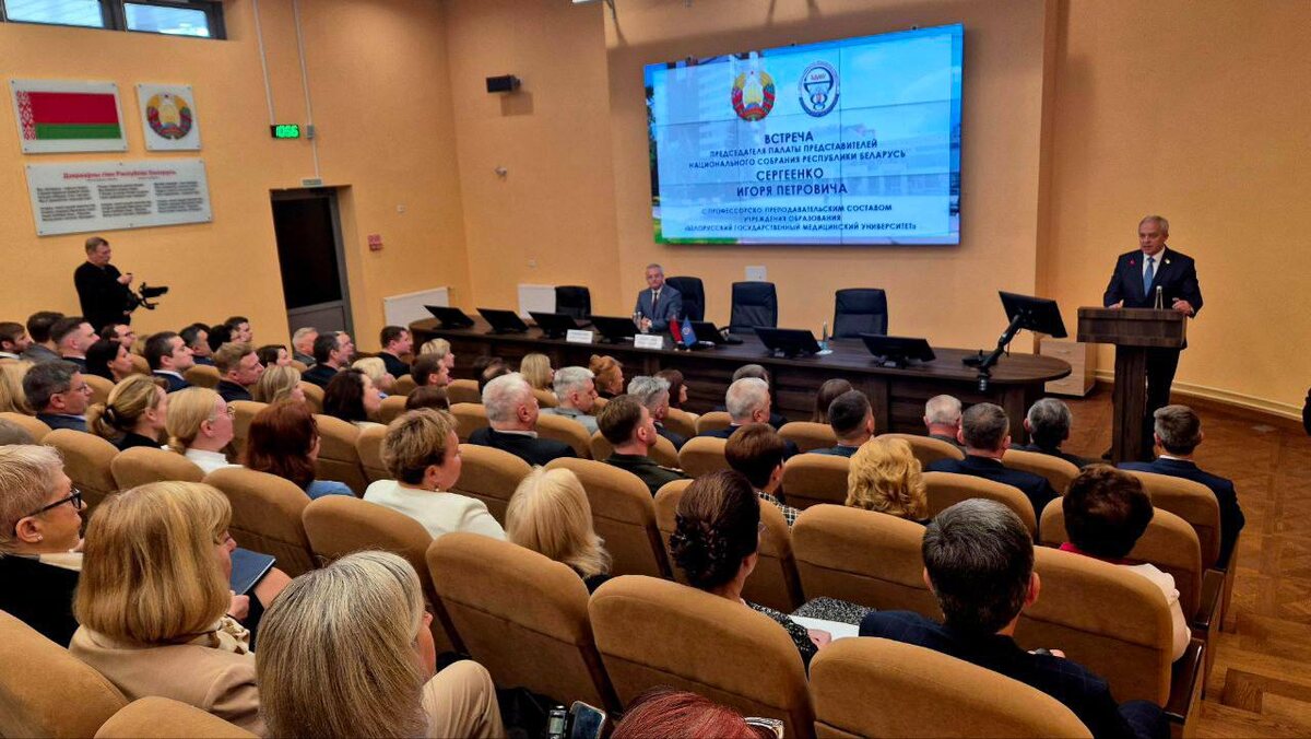 ‼️Депутаты изучают вопросы целевой подготовки медицинских специалистов и работы службы скорой медицинской помощи ⏺Мониторинг ситуации в регионах, выявление «болевых точек» в области кадрового обеспечения отрасли здравоохранения осуществляют и депутаты Палаты представителей во время работы в избирательных округах. Об этом Председатель Палаты представителей Игорь Сергеенко рассказал на встрече с коллективом Белорусского государственного медицинского университета. Кстати, из 109 депутатов 9 народных избранников представляют медицинское сообщество. - Вот и сейчас нашей профильной Постоянной комиссией совместно с Министерством здравоохранения изучаются вопросы целевой подготовки специалистов и работы службы скорой медицинской помощи, - отметил Председатель Палаты представителей. ⚡️Игорь Сергеенко напомнил, что на данный момент реализуется новый подход по организации работы службы в Витебской и Минской областях. Из разных регионов поступает противоречивая информация о том, как налажена эт
