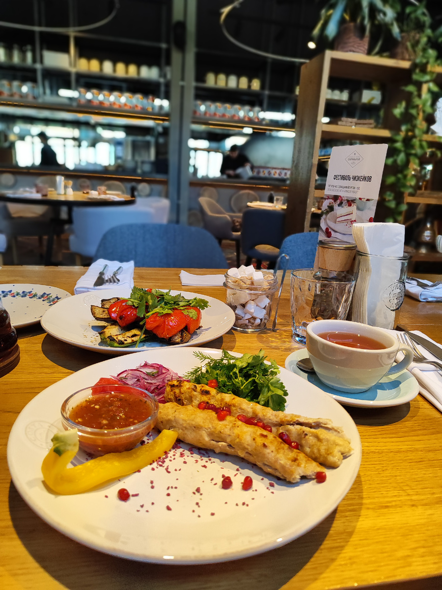 Туда мы голодные и уставшие (но счастливые!) забрели по совету гида после окончания пешеходной экскурсии по Махачкале. Цены дешевые, все было вкусно. Макароны с колбасой, булочка, чай и пахлава около 300 руб за всё. Правда у них не работал туалет, но нас благодушно пустили в соседнее кафе :)