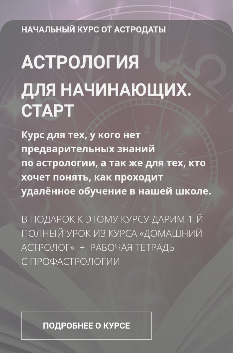 💣Друзья, пока ещё в силе это предложение! ❤️🔥Сейчас большая скидка именно на курс СТАРТ ДЛЯ НАЧИНАЮЩИХ. 4 глубоктх урока по 1 часу, материал о смыслах планет, который вы мало где могли слышать. И ещё бонусом целый урок из курса Домашний Астролог! 💯Этот курс идеально подходит для совсем начинающих. Не упустите шанс окунуться в качественную астрологию всего за 17,50 евро! Дешевле не будет! Ссылка: https://astrodata.pro/start