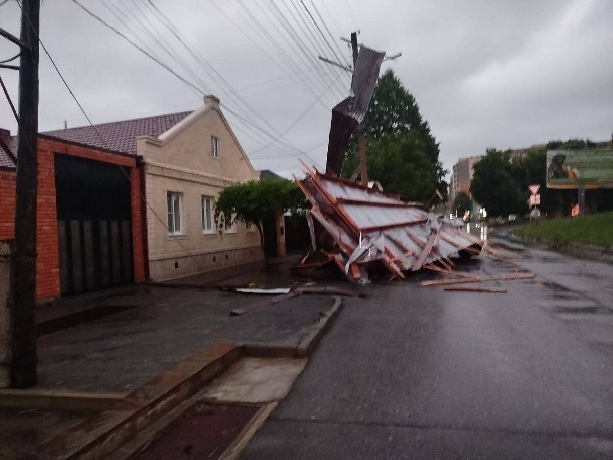 ⚡️ На улице Гастелло, 142 из-за удара стихии фрагмент кровли упал на забор частного дома.