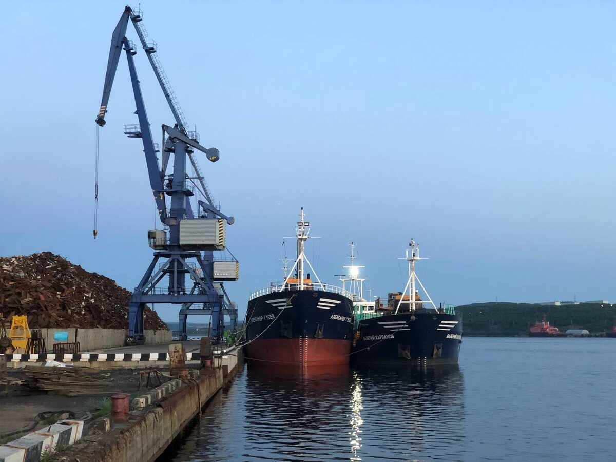 Одно из судов на фото привлекает внимание своим названием — «Валерий Харламов» (флаг РФ, год постройки 1992).