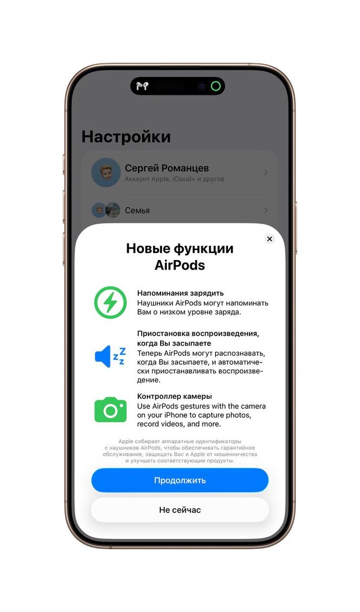 Написал Тим, говорит перевели уведомления о новых фишках на AirPods. Красивое!