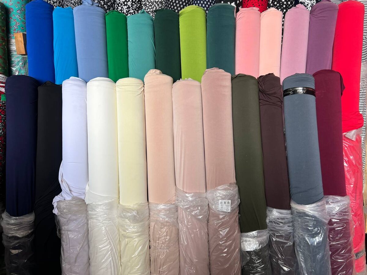 Калифорния Актуальное наличие расцветок 👆 Стрейчевый очень мягкий и приятный трикотаж. Летом в нем очень комфортно , ткань дышит и не прилипает к телу. Состав: 62 % вискоза, 28 % полиэстер, 10% спандекс Плотность 210 гр/ м2 Ширина 1.5 м В рулоне 40-50 метров Оптом от 1 рулона 2.45$/м Подходит для пошива водолазок , кофточек , пижам , нижнего белья , домашних костюмов , мусульманской одежды и т.д.