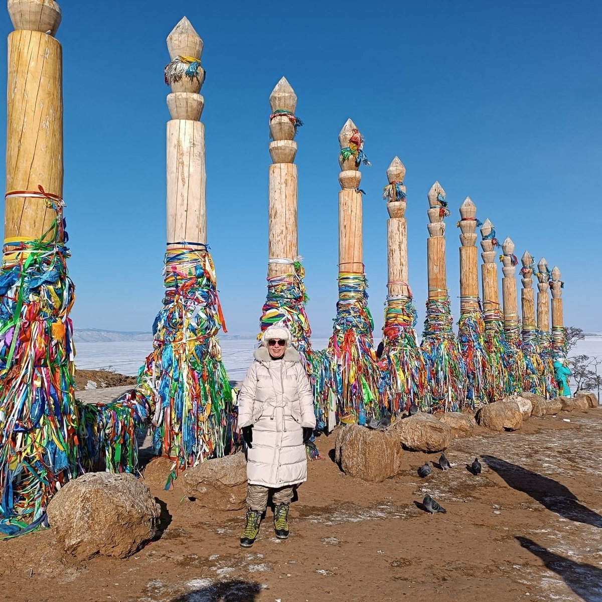 🗿13 столбов на острове Ольхон – место особое. Столбы называются сэргэ и читается, что они связывают между собой три мира, олицетворяют некое мировое древо. Место установки столбов выбрано не случайно. Считается, что в пещере мыса Бурхан жил защитник местных шаманов и почитаемый местными жителями хозяин Ольхона. Говорят, здесь особенная энергетика. Но я не почувствовала, наверное, толпы туристов ее всю исчерпали #путешествияблондинки #байкал